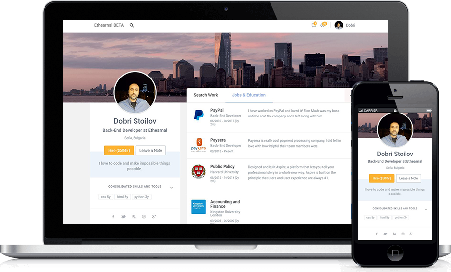 Between the two founders, we have 26 years of experience in various online businesses and have been on both sides of the freelancing model. We’ve been into bitcoin since 2012, and into Ethereum since its ICO.